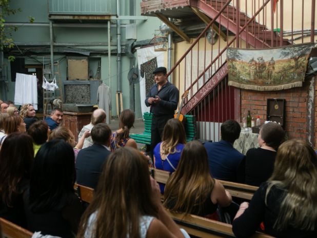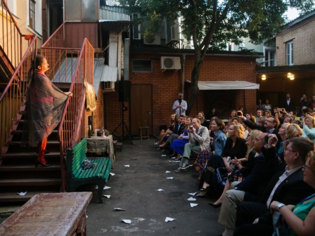 Под открытым небом для всех гостей «Пантеона» прошел закрытый показ культового спектакля «Песни нашего двора». Артисты театра сделали все возможное, чтобы этот вечер запомнился всем: зрители то и дело становились участниками представления. Смех, как известно, объединяет, потому атмосфера во дворе быстро стала по-настоящему дружеской.