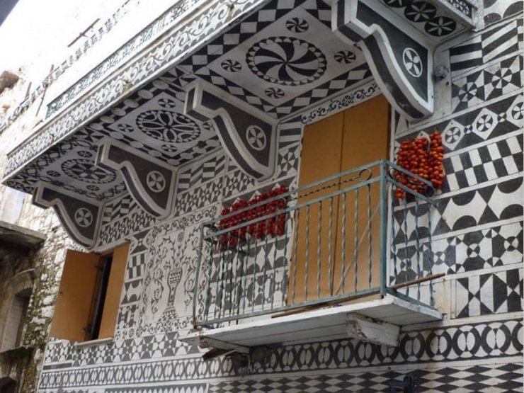 В деревне Пирги на греческом острове Хиос распространена интересная техника декорирования зданий. Она называется «ксиста». Дома расписаны орнаментами, кропотливо выцарапанными на штукатурке. При этом мастера Хиоса используют в своей работе простой инструмент, без которого сложно представить повседневную жизнь. Вплоть до 16 века этот прибор был признаком роскоши и им пользовались только аристократы.
