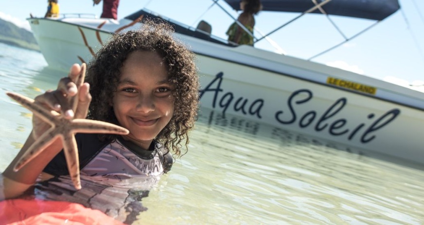 Путешествие начинается с посещения знаменитого морского парка Блю-Бэй для снорклинга среди кораллов и тропических рыб. Программа включает купание в прозрачной лагуне у острова Иль-о-Эгрет, экскурсию на остров с маяком и вторую остановку для снорклинга в О-Блё. Также предусмотрен визит к водопадам Большой Юго-Восточной реки и отдых с обедом на уединенном пляже рядом с островами Иль-о-Манжени и Иль-о-Серф.