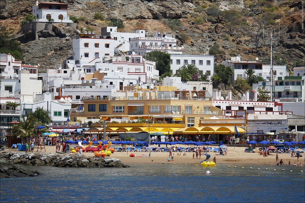 - Южный город-курорт Маспаломас известен своим городским пляжем и популярен у местных жителей и туристов. На севере острова также очень популярен, особенно у европейцев, четырехкилометровый оборудованный пляж в городской черте Лас-Пальмаса. На юго-западном побережье туристы могут понежиться на пляжах Пуэрто-Рико и Пуэрто-Могаке, куда из Сахары завезен мягкий белоснежный песок.