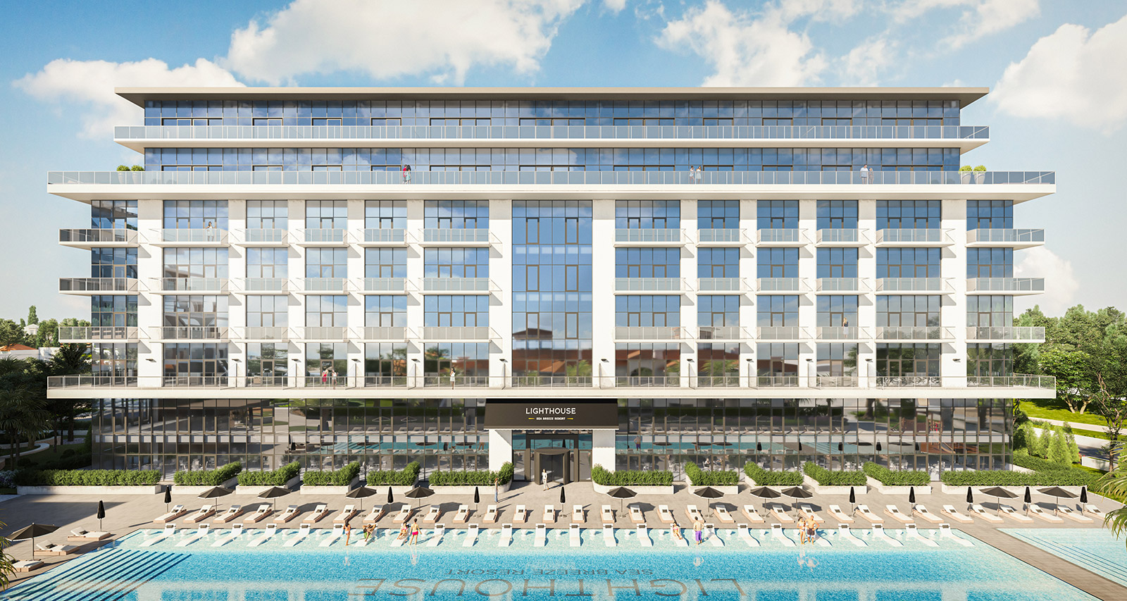 Квартиры и пентхаусы в резиденции Lighthouse имеют высокие потолки и панорамные окна. На территории комплекса расположен бассейн площадью 52 м² с мини-баром и зонами для отдыха у воды. Для гостей бесплатный вход в пляжный клуб.