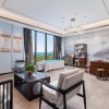 Люкс открытой планировки расположен на 6-22 этажах, двуспальная кровать king-size, в ванной комнате душевая кабина со стеклянной матовой перегородкой, гостевая зона с диваном, меблированный балкон, вид на море;