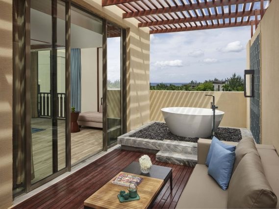 Fairmont Sanya Haitang Bay — это роскошный отель, который предлагает виды на пляж и знаменитый остров Ву Чжи Жо. Он расположен в бухте Хайтан, и его архитектура отличает изысканное мастерство работы с редкими породами дерева, а сам отель окружён 1200-метровой рекой Юнь, что создаёт атмосферу покоя, романтики и отдыха.