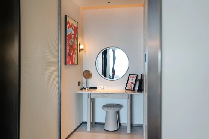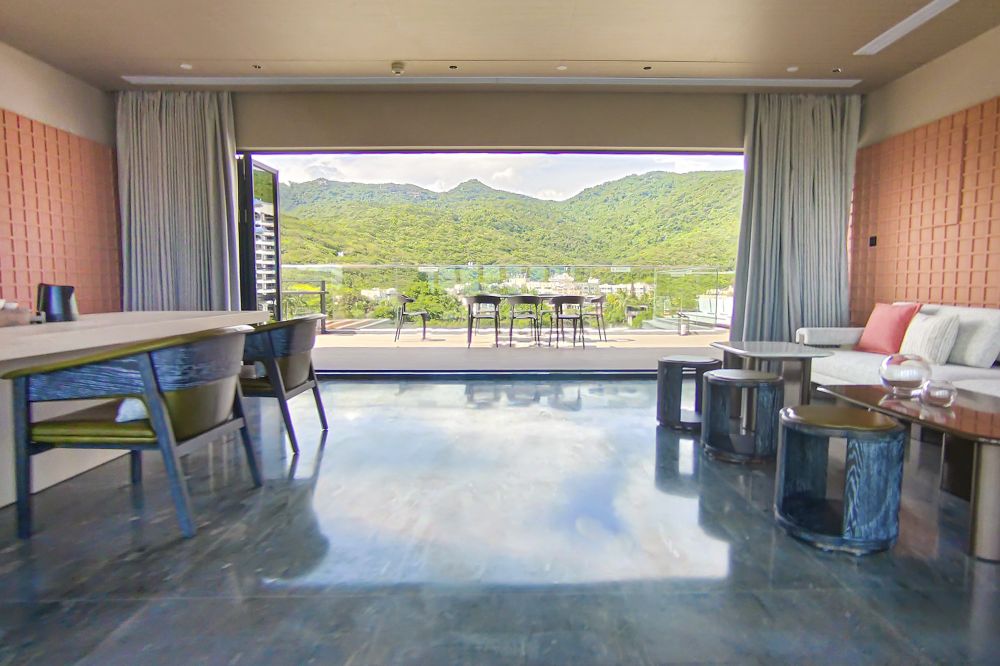 10-й этаж, семейный люкс с дизайном для детей: главная спальня с кроватью king size и гардеробной, детская спальня (без окна) с двухъярусной кроватью в виде ракеты, просторная гостиная с панорамными окнами, обеденной зоной и полностью укомплектованной кухонной зоной (плита, СВЧ-печь, раковина, посудомоечная машина, холодильник, кофемашина), ванная комната с душевой кабиной и сауной, два туалета, балкон с ванной, панорамный вид на океан с самой высокой точки обзора в отеле;