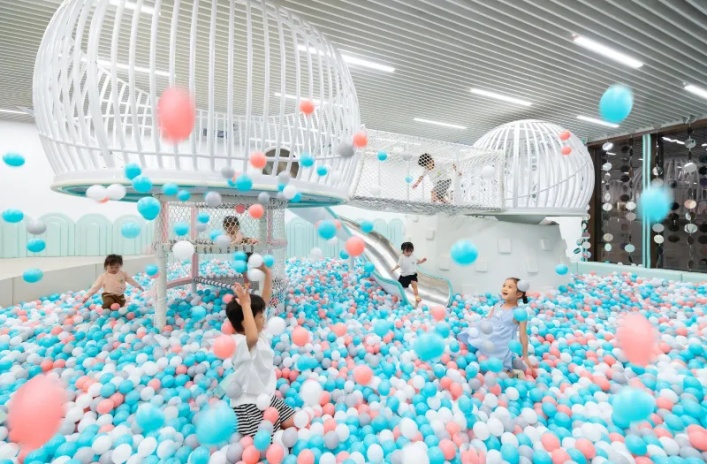 2-8 этаж, семейный номер с дизайном в «мультяшном» стиле с угловым балконом и панорамными окнами, кровать king size, игровая зона с вигвамом, гостевая зона с большим диваном, ванная комната с душевой кабиной, туалетный столик, меблированный балкон с ванной, вид на океан/ на озеро;