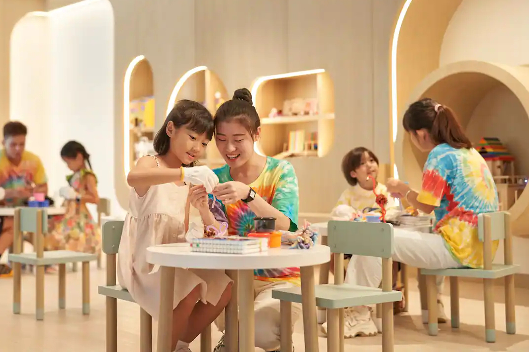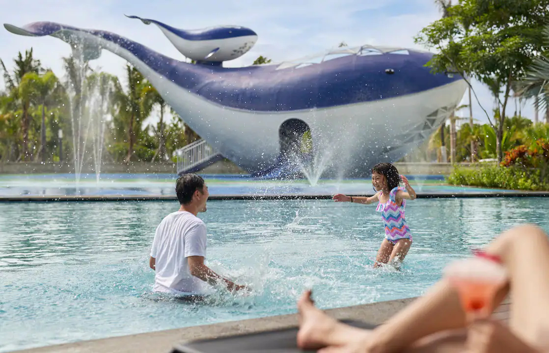 Семейный люкс с двумя спальнями: главная спальня с двуспальной кроватью king-size, спальня для детей с двухъярусной кроватью; отдельная гостиная с обеденной зоной, мини-кухня, 2 ванные комнаты, ванна и душ, собственный меблированный дворик (1-й этаж) , меблированный балкон с видом на тропический сад (верхние этажи);