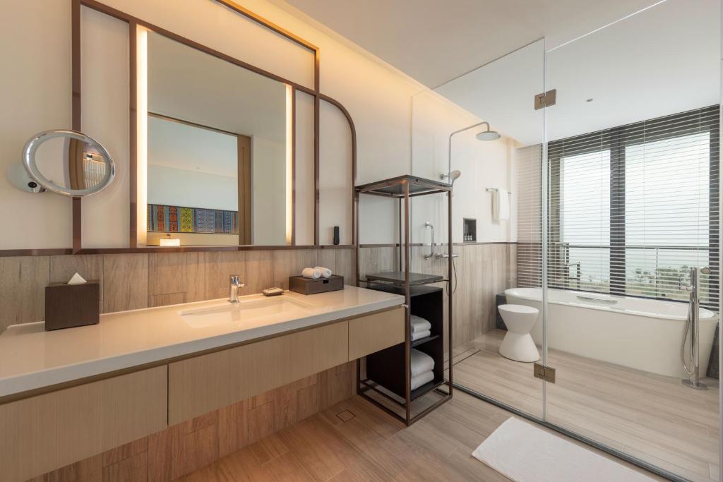 Клубный люкс*: спальня с двуспальной кроватью king-size, ванная комната в спа-стиле, отдельная гостиная с диваном-кроватью, обеденная зона и мини-кухня, меблированный балкон; панорамный вид на океан с верхних этажей; есть смежный номер с двумя двуспальными кроватями;