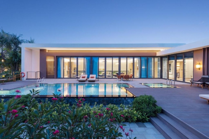 Клубная вилла*: 2 спальни с двуспальными кроватями king-size, ванная комната с ванной и душем, гостиная, столовая, полностью оборудованная кухня, подсобное помещение/ комната для дворецкого, меблированная терраса, шезлонги, обеденная зона, бассейн и джакузи на свежем воздухе, собственный дворик; вид на сад.