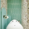 ** В части номеров ванная комната отделяется от жилого помещения прозрачной сдвижной дверью.