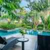 Отдельная вилла c 2-мя спальнями: стеклянные двери от пола до потолка, в спальнях – двуспальная кровать и 2 односпальные кровати, в каждой – собственные ванные комнаты с ванной и душем; гостиная с зоной отдыха, обеденная зона, кухня, кабинет, комната для спа-процедур, меблированная терраса с обеденным столом, сад, собственный бассейн с постоянной температурой воды (глубина 1, 25 м, длина 12 м), душ на свежем воздухе, вид на сад;