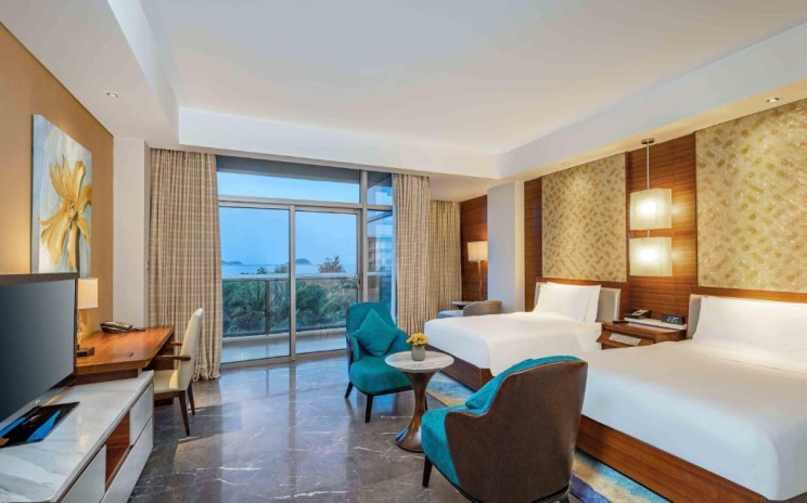Номер на 3–5 этажах: двуспальная или 2 односпальные кровати, ванная комната с ванной и душем, балкон, частичный вид на океан;