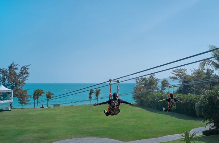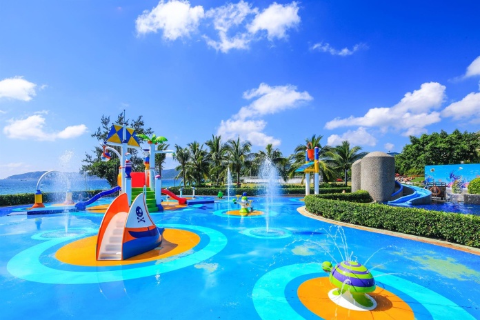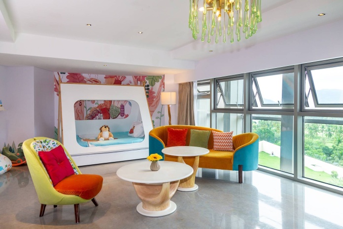Семейный сьют с 2-мя спальнями на 3–5 этажах: двуспальная кровать king-size и двуспальная кровать queen-size, 2 ванные комнаты, принадлежности для детей, игровые зоны «Домик на дереве» и «Спортивные соревнования», горки, игрушки, отдельный детский туалет, меблированный балкон, частичный вид на океан;