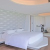 5 этаж, дизайнерский люкс открытой планировки с двуспальной кроватью (ширина 1,8 м, гостевой и обеденной зонами, отдельная ванная комната с душевой кабиной и ванной, балкон-терраса с ванной на свежем воздухе, шезлонгами и зонтом, вид на море;