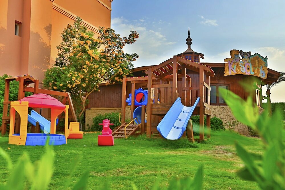 К услугам гостей: аквапарк для взрослых и детей с водными горками и бассейнами, два открытых бассейна, ресторан, четыре бара, детский клуб, анимация и волейбольная площадка.