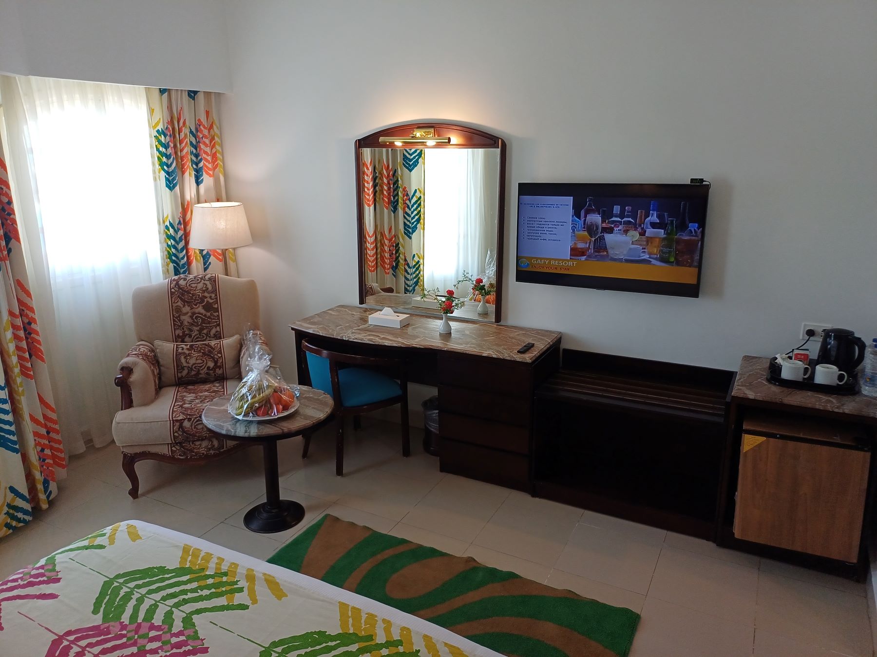 В номере: Wi-Fi, кондиционер, сейф, телевизор, спутниковое телевидение (есть канал на русском языке), телефон, банно-косметические принадлежности, фен, халат и тапочки (не во всех номерах), электрочайник, набор для приготовления чая и кофе, мини-бар (платно), бутилированная вода,