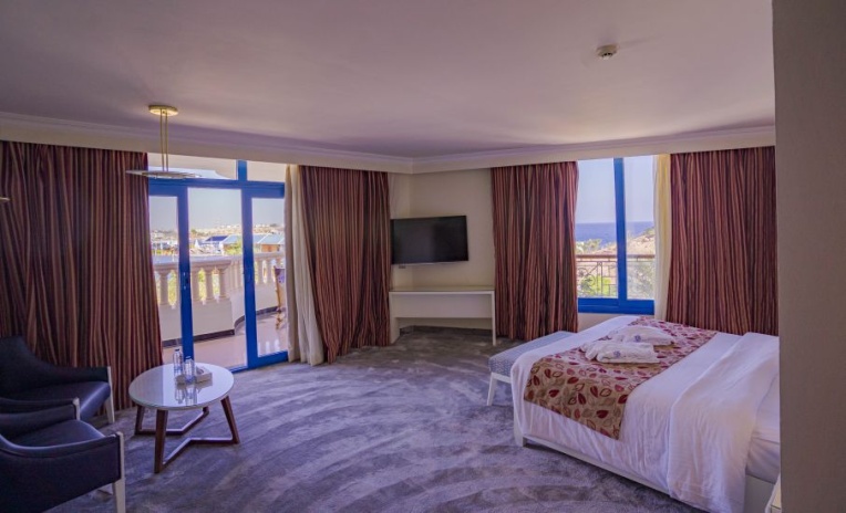 • 59 номеров Superior Sea View (28 м², макс. 3+1 или 2+2).