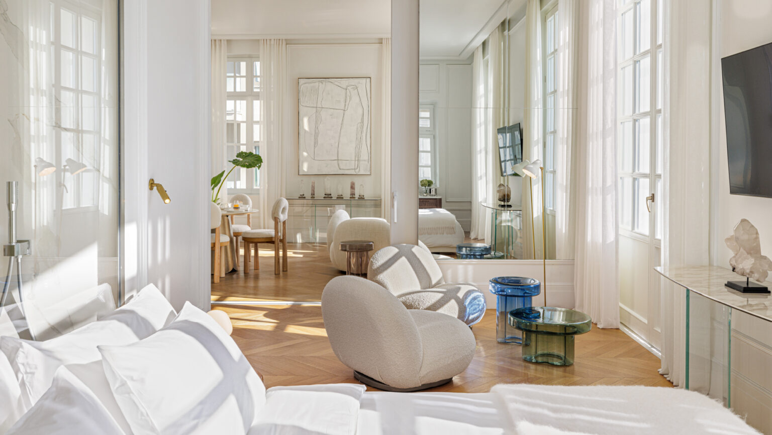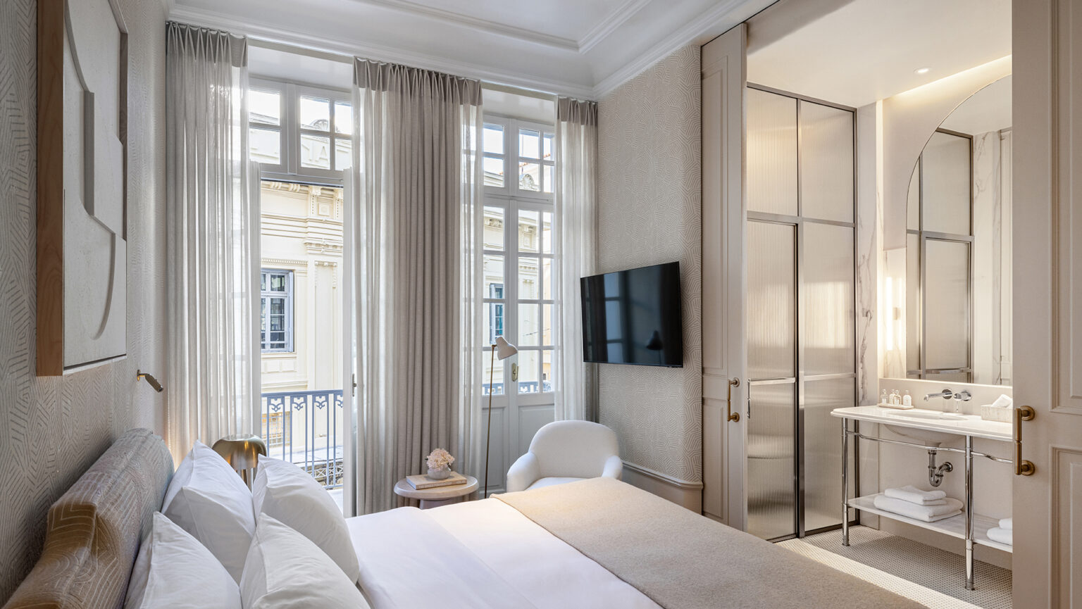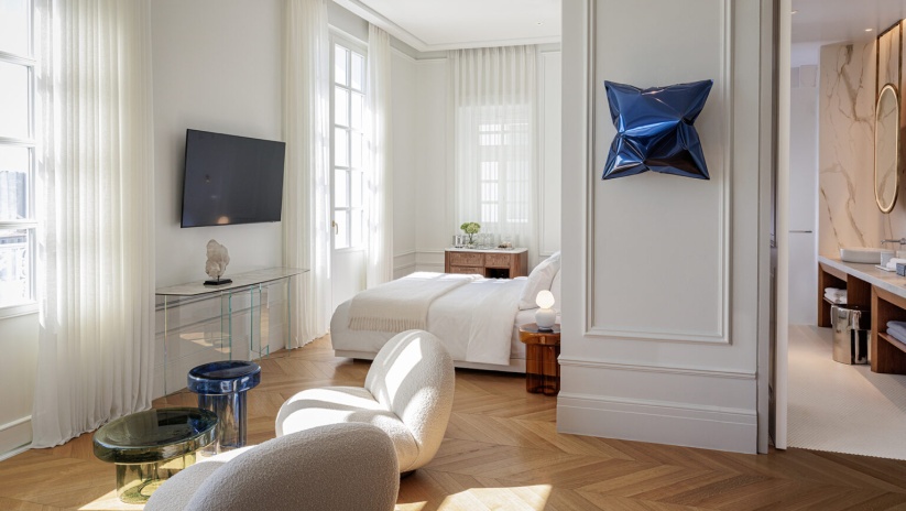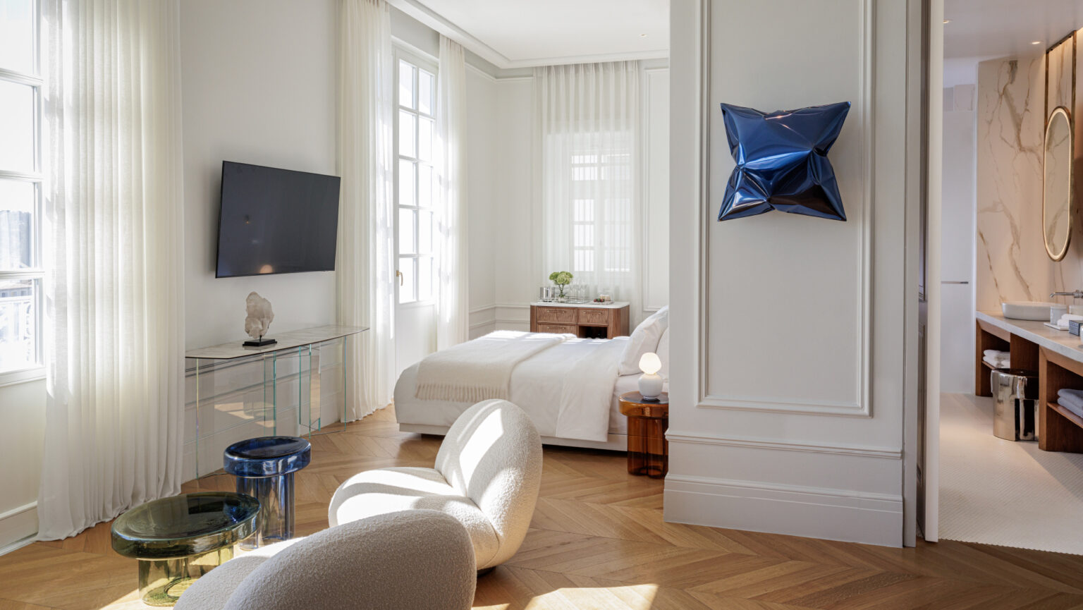 В номерах: высота потолков 3,5 м, большие окна с обилием естественного света, кровать и мебель по индивидуальному заказу, частный мини-бар с бесплатным кофе и чаем, мини-бар с шампанским, напитками и закусками (за дополнительную плату), декоративные предметы искусства, шкаф, банные принадлежности, чайник, кофемашина Nespresso, телефон, смарт ТВ, сейф, Wi-Fi, кондиционер/отопление, халаты, тапочки, люксовые банные принадлежности, зеркало для макияжа, фен, меню подушек, отпариватель, утюг и гладильная доска (по запросу), детские принадлежности и оборудование (по запросу).
