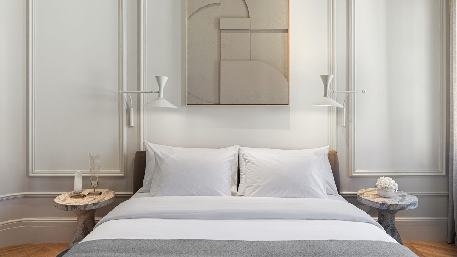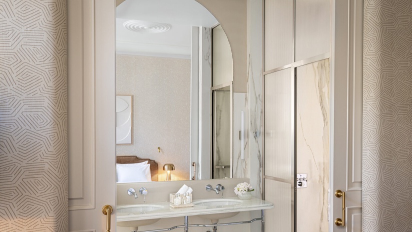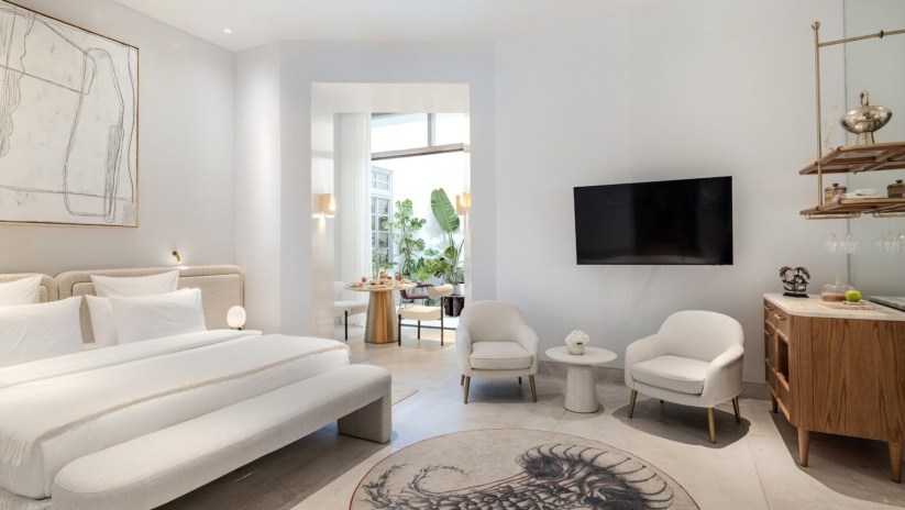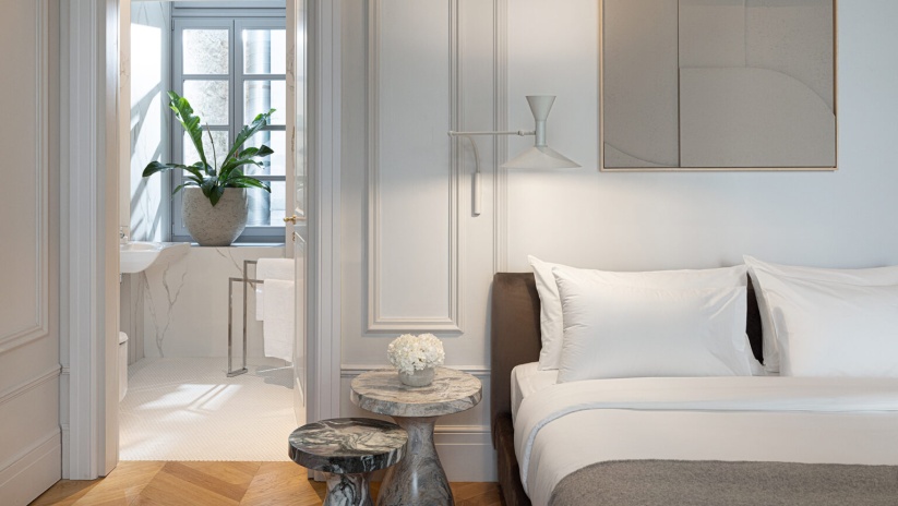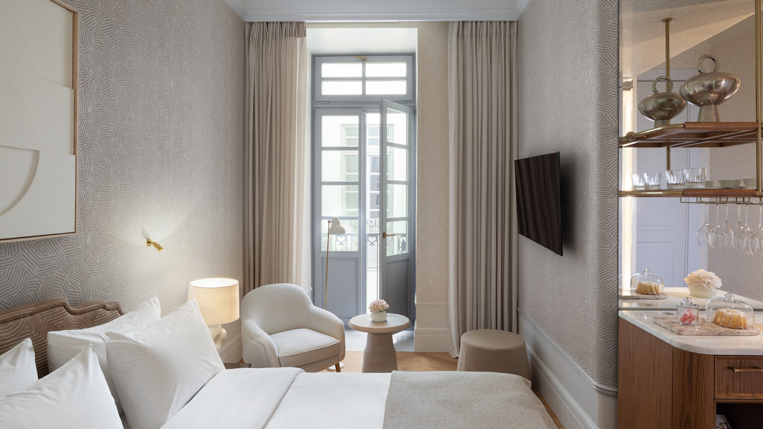 В номерах: высота потолков 3,5 м, большие окна с обилием естественного света, кровать и мебель по индивидуальному заказу, частный мини-бар с бесплатным кофе и чаем, мини-бар с шампанским, напитками и закусками (за дополнительную плату), декоративные предметы искусства, шкаф, банные принадлежности, чайник, кофемашина Nespresso, телефон, смарт ТВ, сейф, Wi-Fi, кондиционер/отопление, халаты, тапочки, люксовые банные принадлежности, зеркало для макияжа, фен, меню подушек, отпариватель, утюг и гладильная доска (по запросу), детские принадлежности и оборудование (по запросу).