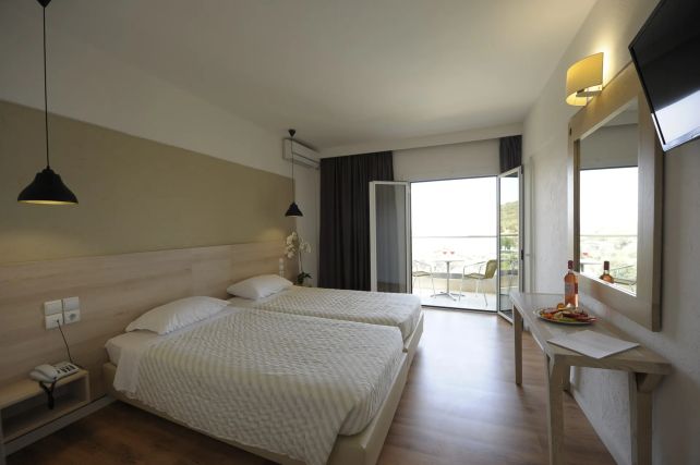 Evia Riviera Resort – курорт на острове Эвия, который предлагает комфортный отдых на берегу Эгейского моря. Отель расположен в 7-этажном здании, окружён средиземноморским садом, и имеет частный переход к оборудованному пляжу.