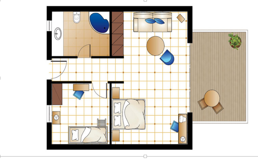 - Family Open Plan Side Sea View (35 м², макс. 2+2).