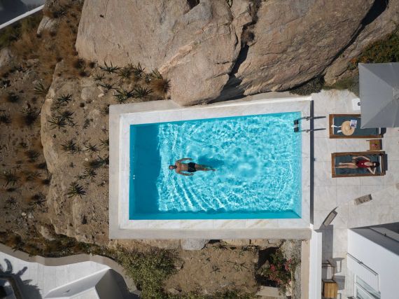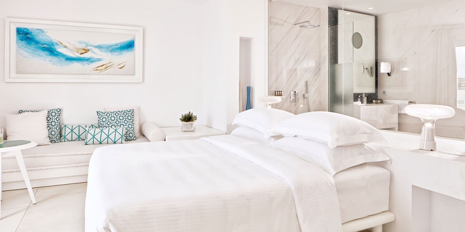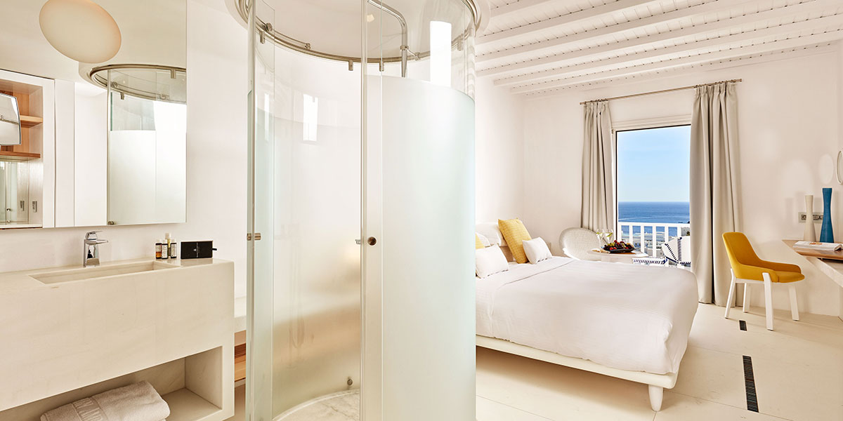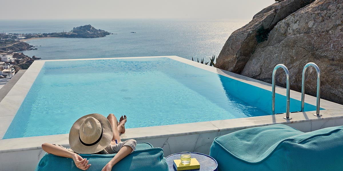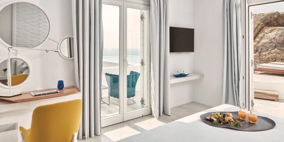 Myconian Ambassador Relais & Châteaux — это роскошный бутик-отель на южном побережье Миконоса, всего в 150 метрах от пляжа Платис-Гиалос. Отель расположен на холме и предлагает потрясающие виды на Эгейское море и окрестные пляжи, сочетая уединённость с близостью к популярным местам острова.