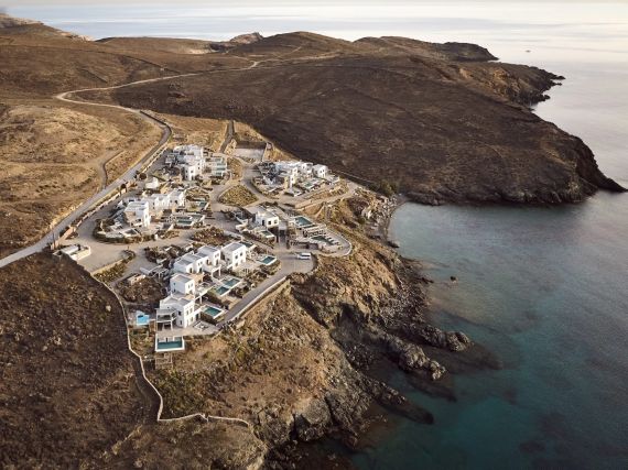 Спальня с двуспальной кроватью, гостиная комната с диваном и обеденной зоной, ванная комната с душем, терраса, обеденная зона на террасе (внешняя площадь – 120 м²), персональный бассейн (32 м²); панорамный вид на море, см. план номера;