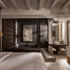 Спальня с двуспальной кроватью, 2 ванные комнаты (одна с душем, другая с джакузи), гостиная комната с диваном и обеденным столом, терраса с обеденной зоной (внешняя площадь – 80 м²) и персональным бассейном (32 м²); панорамный вид на море, см. план номера;
