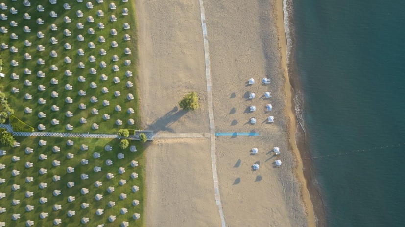 Комплекс состоит из двух пятиэтажных белоснежных корпусов, окружённых зелёными лужайками, цветами и декоративными растениями. Гостям предлагаются уютные и комфортабельные номера с балконами и видом на море.