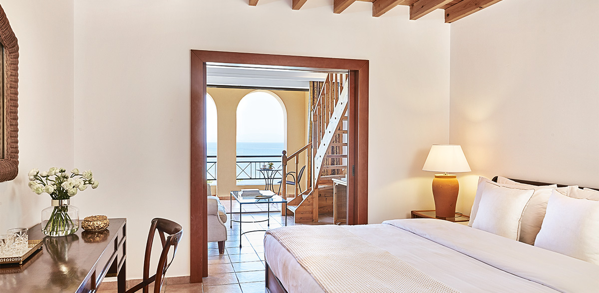 Номера расположены в основном здании на первом этаже (ground floor), вид на море, 2 спальни (раздвижная дверь между комнатами): двуспальная кровать queen-size или 2 односпальные кровати + 1 дополнительная односпальная кровать, ванная комната с ванной, терраса 7 м², см.план номера, см.фото номера;