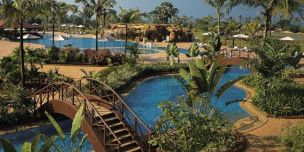 Отель раскинулся на 86 акрах благоустроенных садов на западном побережье Гоа. Расположенный между устьями двух рек, отель предлагает береговую линию длиной 880 метров, предоставляя уникальную возможность гостям отеля наслаждаться морской и пресной водой.InterContinental The Lalit Goa Resort отель класса deluxe, построенный в португальском стиле, включает 14 корпусов с 255 просторными изящно декорированными номерами.