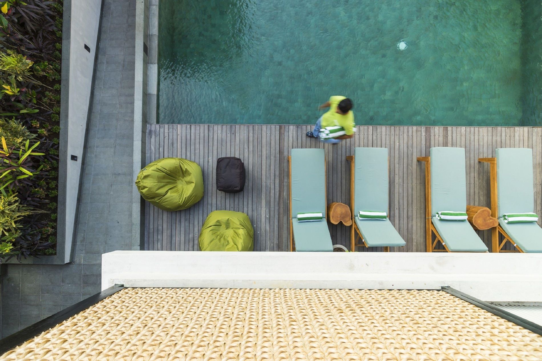 В трёхэтажном здании предусмотрено около двух десятков стильных дизайнерских номеров-студий, сочетающих традиционные балийские элементы и современные удобства. В числе преимуществ — балконы или террасы в каждом номере.