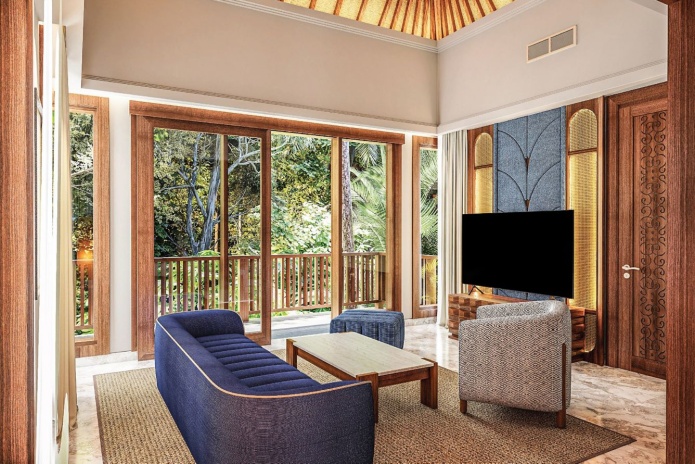 Номерной фонд включает сьюты и виллы с использованием натуральных материалов и элементов ручной работы
