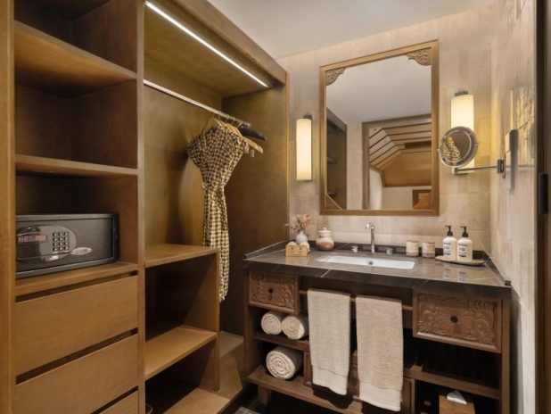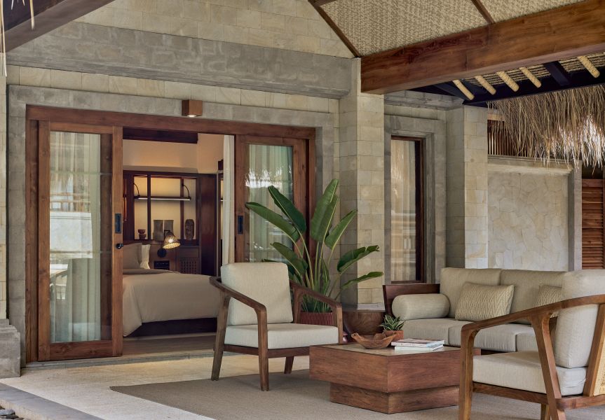 Расположена в тихой части курорта, только для гостей 16+, спальня с двуспальной кроватью king-size, гардеробная, гостиная и обеденная зоны, частный сад и бассейн, вид на бассейн, преимуществами зоны The Reserve, включая доступ в приватные пространства отеля;