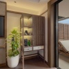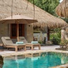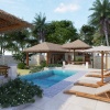 Расположена в тихой части курорта, только для гостей 16+, 2 спальни: двуспальная кровать king-size и 2 односпальные кровати, гардеробная, ванная комната, терраса, частный бассейн и сад, вид на бассейн.