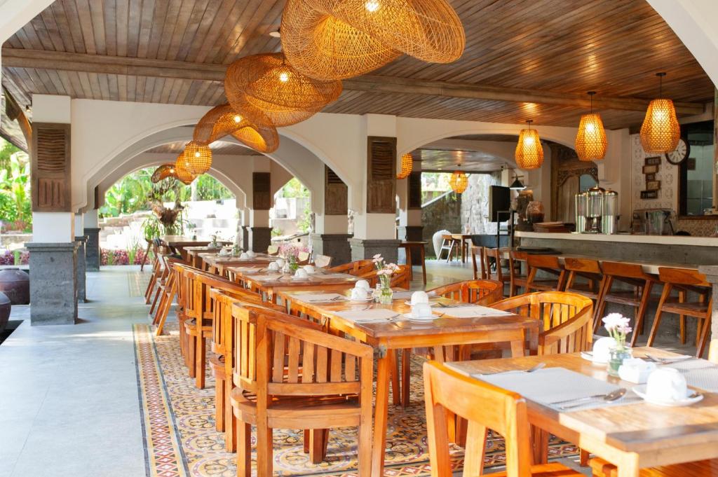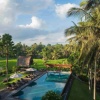 Гости могут отдыхать в садах и у двух бассейнов с видом на реку и зелёные просторы. Курорт предлагает мастер-классы по кулинарии и экскурсии на ремесленные рынки, превращая пребывание в культурный опыт Бали.