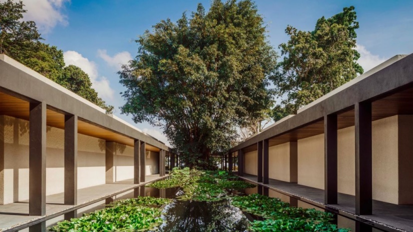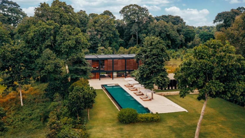 Каждый сьют площадью от 105 м² продуманно спроектирован для гармоничного взаимодействия с природой. Все номера оснащены частным бассейном, открытым внутренним двориком, а также просторной ванной комнатой с ванной и душем.