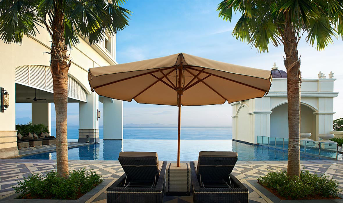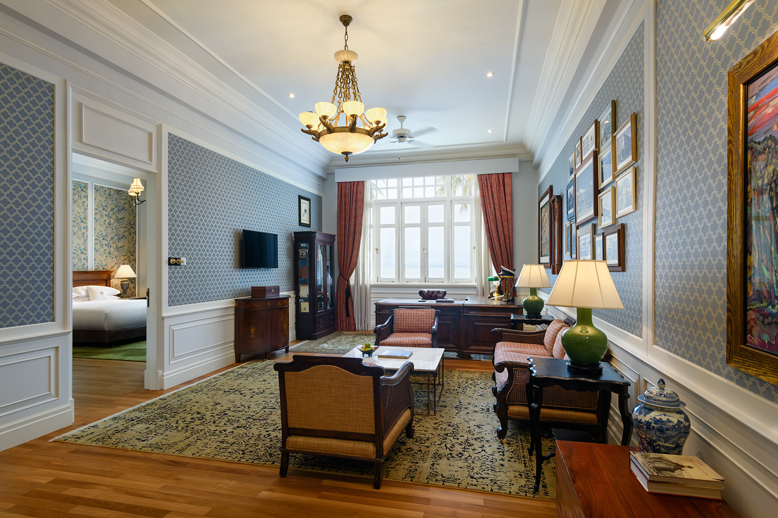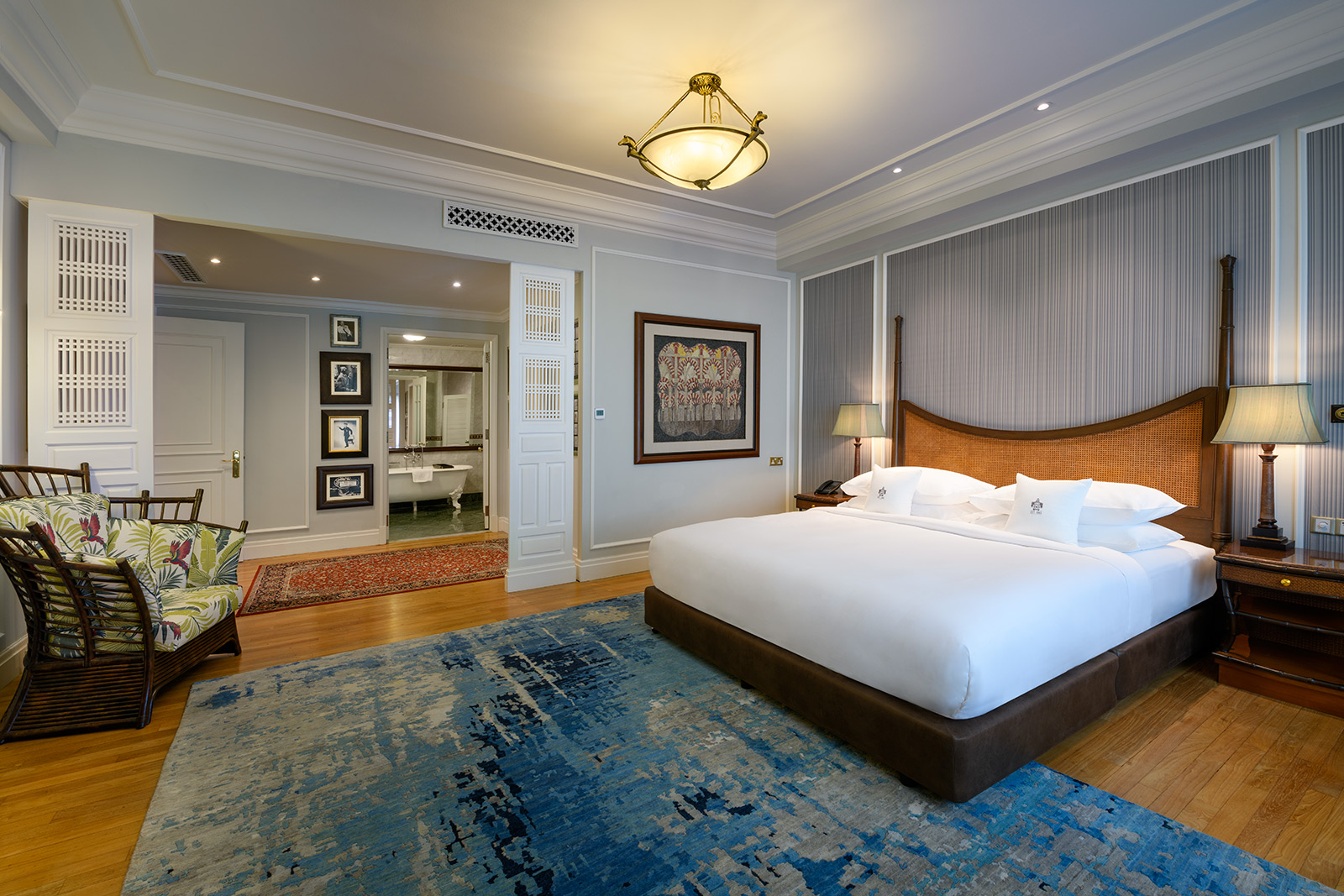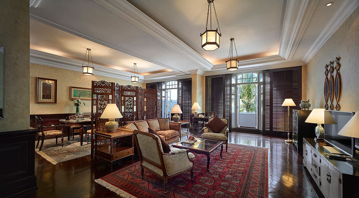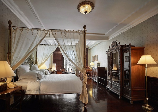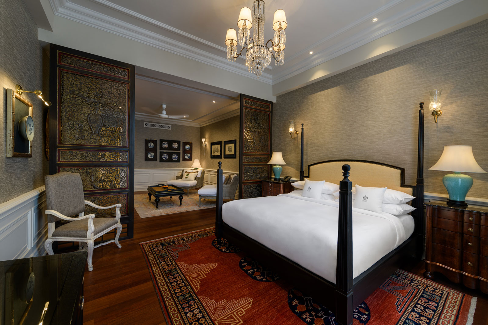 Эксклюзивный, уединенный и самый большой люкс в крыле Heritage на 3 этаже, с балконами и видом на Малаккский пролив; 1 спальня с двуспальной кроватью king size, отдельный кабинет, гостиная-приемная с примыкающей отдельной столовой и обеденным столом на 22 персоны, баром и мини-кухней для дворецкого, раздельные туалеты для джентльменов/леди; гардеробная, отдельная ванная комната, украшенная позолотой, с гидромассажной ванной, душем и двумя раковинами; вид на море; возможно объединение с двумя соседними номерами для создания люкса с 3-мя спальнями площадью 638 м²; эксклюзивные привилегии*;