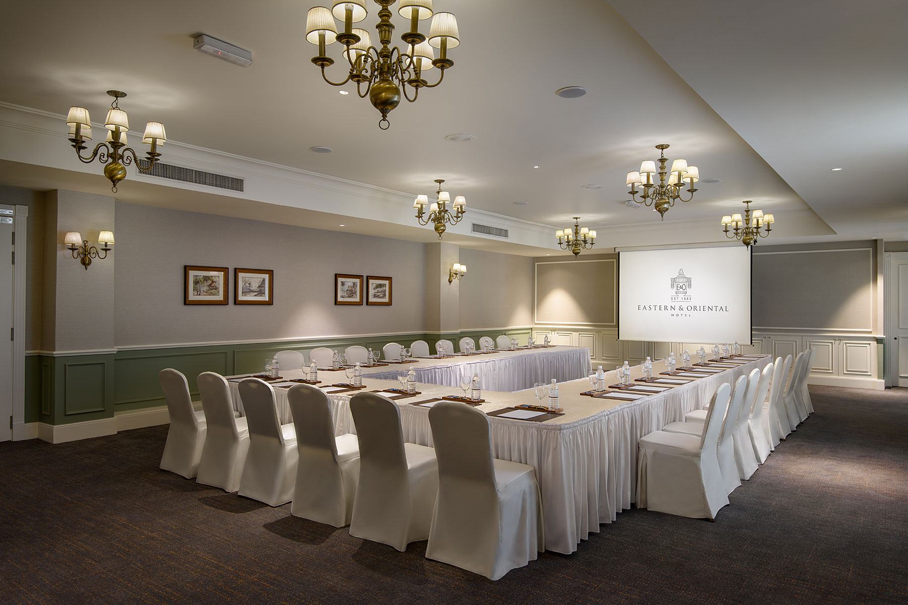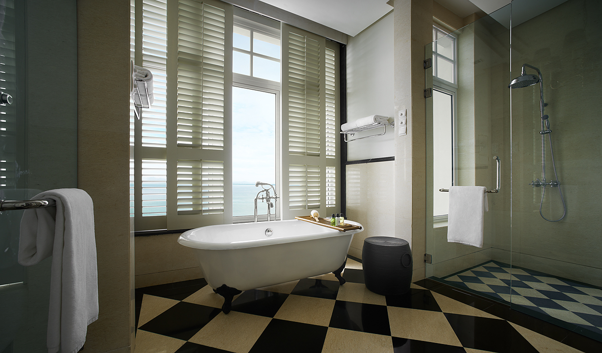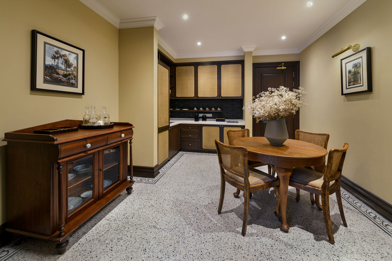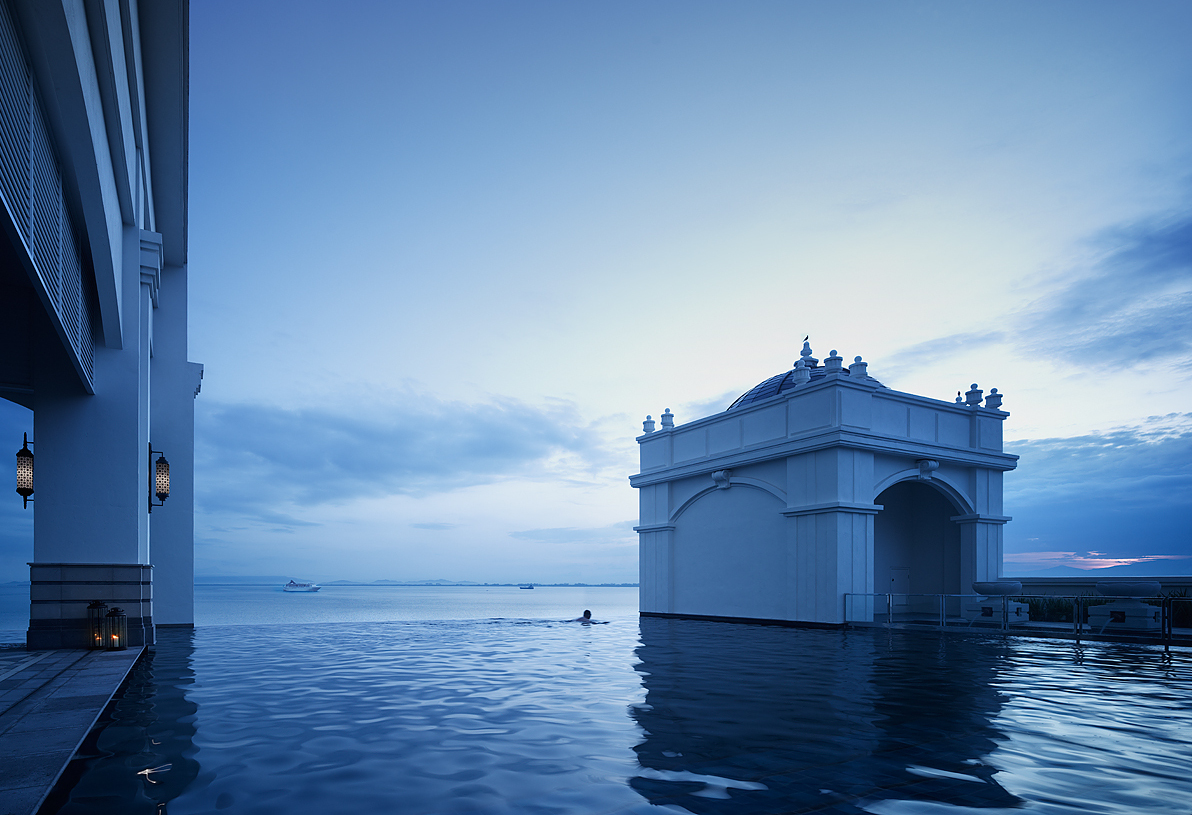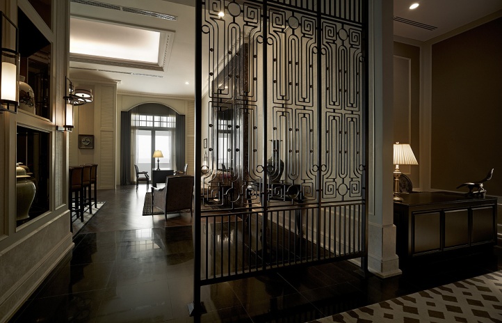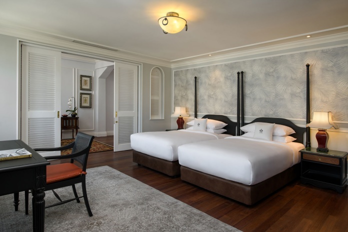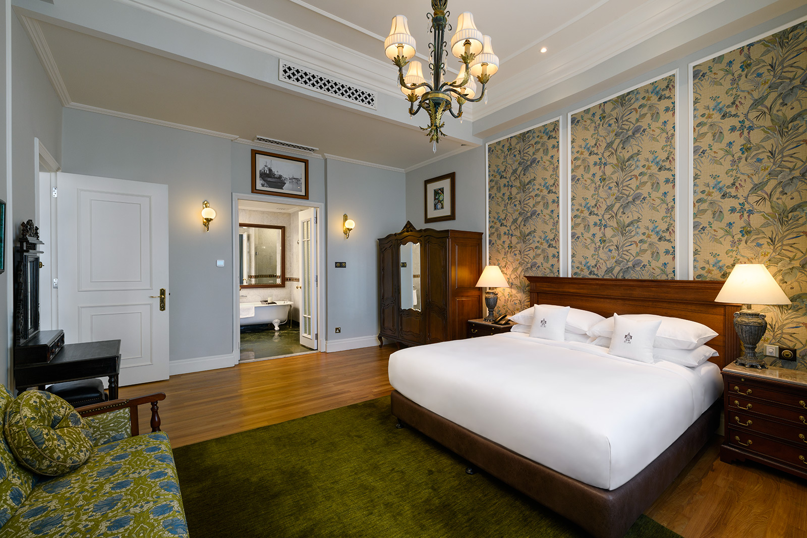 Эксклюзивный, уединенный и самый большой люкс в крыле Heritage на 3 этаже, с балконами и видом на Малаккский пролив; 1 спальня с двуспальной кроватью king size, отдельный кабинет, гостиная-приемная с примыкающей отдельной столовой и обеденным столом на 22 персоны, баром и мини-кухней для дворецкого, раздельные туалеты для джентльменов/леди; гардеробная, отдельная ванная комната, украшенная позолотой, с гидромассажной ванной, душем и двумя раковинами; вид на море; возможно объединение с двумя соседними номерами для создания люкса с 3-мя спальнями площадью 638 м²; эксклюзивные привилегии*;