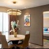 Сьют–апартаменты с 2-мя спальнями на 36-45 этажах: каждая с двуспальной кроватью и собственной ванной комнатой с душем (ванная комната главной спальни с душем и ванной), отдельная гостиная, обеденная зона со столом на 4 персоны и мини-кухня: холодильник, СВЧ-печь, плита, раковина, шкафы для хранения, стиральная и сушильная машины, вид на город; план номера 1 вар., план номера 2 вар., план номера 3 вар;