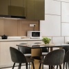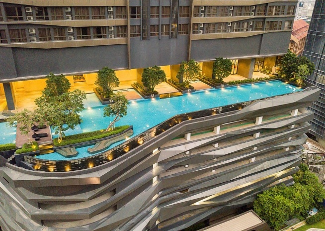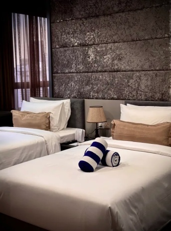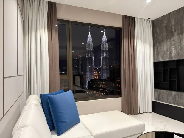 В 48-этажном здании представлены современные сьюты с видом на город, полностью оборудованными кухнями, стиральными машинами и дополнительными спальнями, что делает отель удобным для семей с детьми и длительного проживания.