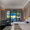 Двухкомнатный сьют на 1 этаже: спальня с 1-й двуспальной или 2-мя односпальными кроватями, ванная комната с ванной и душевой кабиной, отдельная гостиная, обеденная зона, меблированная терраса-патио, собственный небольшой бассейн, вид на сад/ на море;