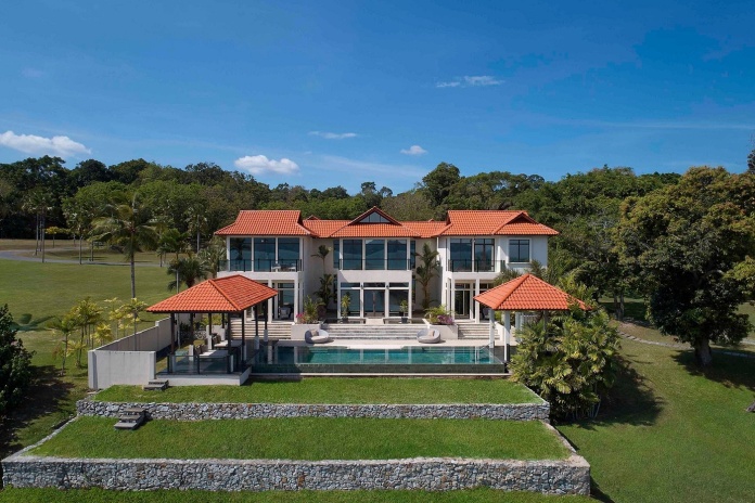 Двухэтажная вилла с 5-ю спальнями: три спальни - с двуспальной кроватью, две - с двумя односпальными кроватями, 5 собственных ванных комнат с ванной и душем, 2 гостиные, отдельная столовая с обеденным столом на 10 персон, мини-кухня (СВЧ-печь, кофеварка, чайник), зона для массажа, меблированная терраса (зонты, шезлонги), беседка, вид на океан и на пирс.