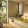 Номер на 1 этаже двухэтажного корпуса: 1 двуспальная или 2 односпальные кровати, ванная комната с душевой кабиной, ванна и душ на открытом воздухе, открытая меблированная терраса-патио и выход на благоустроенный газон, вид на сады, план номера;