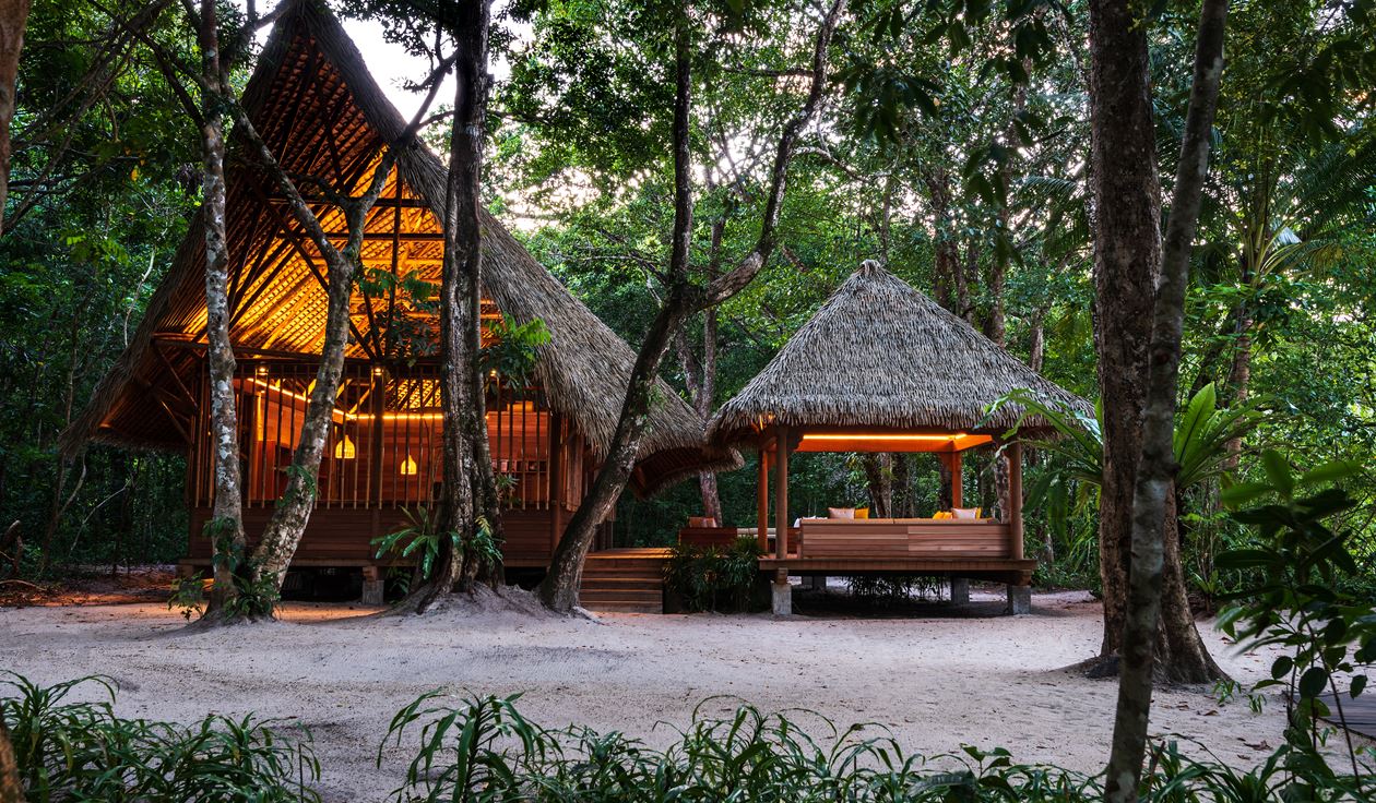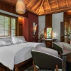 Уединенные виллы** на сваях в тропическом лесу, открытая планировка: двуспальная кровать king-size или 2 односпальные кровати, письменный стол, туалетный столик, гостиная зона с диваном, просторная ванная комната с душевой кабиной, ванной, двойной раковиной и гардеробной зоной, пополняемый мини-бар (за исключением снэков и алкогольных напитков), меблированный балкон, вид на тропический лес; план виллы;