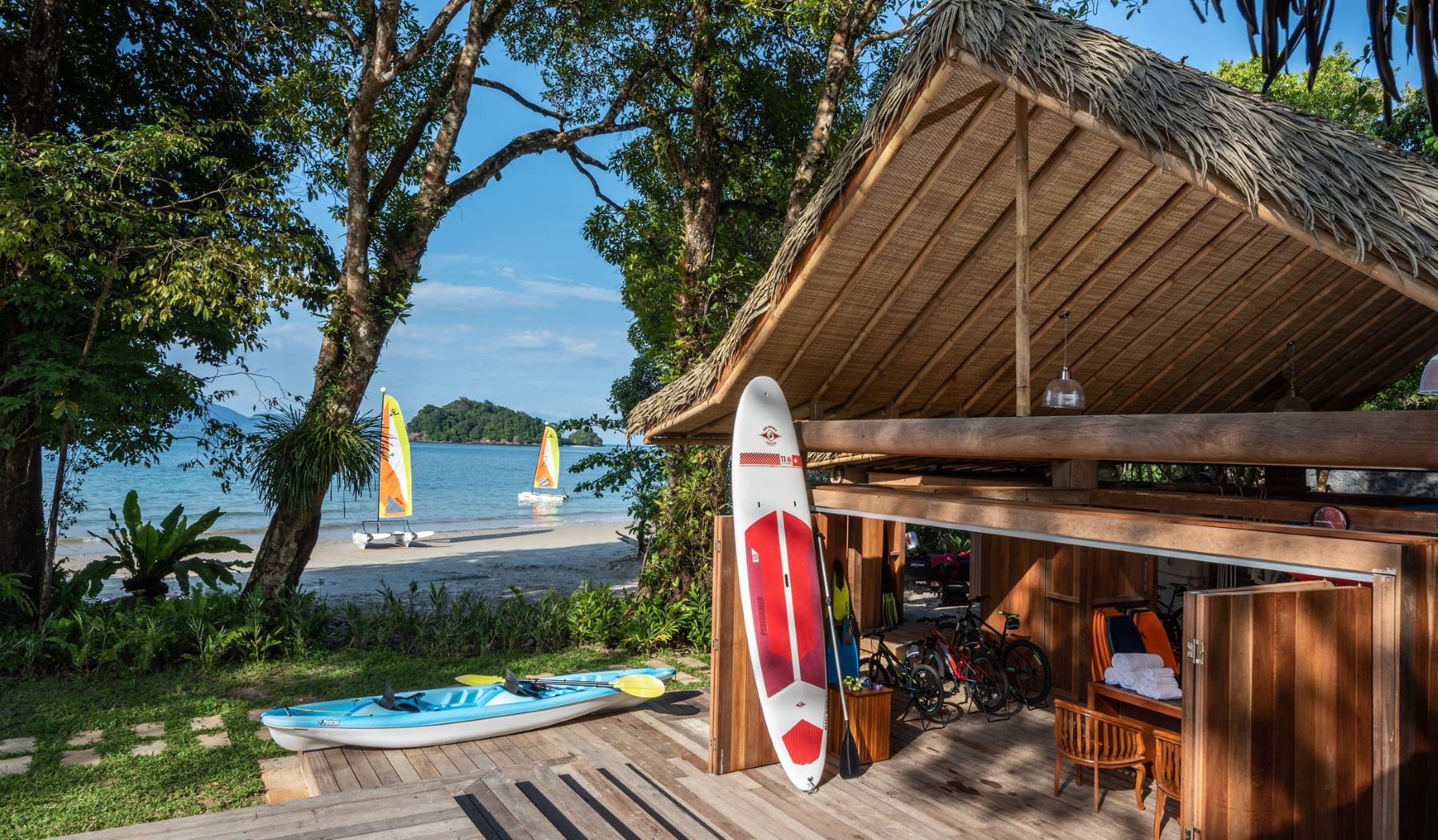 В номерах: Wi-Fi, кондиционер, LED-телевизор с интерактивными IPTV технологиями, телефон, сейф, халат, тапочки, бесплатные банно-косметические принадлежности, тропический душ, ежедневная бесплатная бутилированная питьевая вода, электрочайник, принадлежности для чая/кофе, мини-бар (платно), утюг и гладильная доска, стол и стулья на террасе, ежедневная уборка, бинокли для наблюдений за природой (не во всех номерах), универсальные зарядные устройства для электронных устройств.
