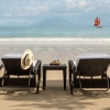 Вилла с 2-мя спальнями с на берегу: с двуспальной кроватью и 2-мя односпальными кроватями, 2 ваннные комнаты (обе с ванной и душем), гардеробные, отдельная гостиная-столовая с высокими деревянными потолками, окнами от пола до потолка, диваном, обеденным столом, подсобное помещение/ кухня для дворецкого, меблированная терраса, открытая обеденная зона на 8 персон, частный бассейн (10 м²), сад, выход к пляжу, привилегии для проживающих в номере*, план виллы.