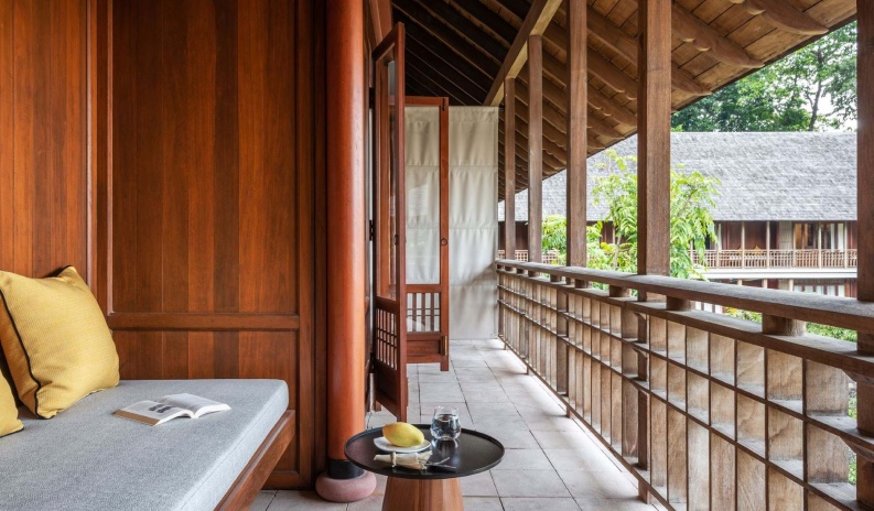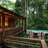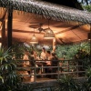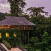 Уединенные виллы** на сваях в тропическом лесу, открытая планировка: двуспальная кровать king-size или 2 односпальные кровати, письменный стол, туалетный столик, гостиная зона с диваном, просторная ванная комната с душевой кабиной, ванной, двойной раковиной и гардеробной зоной, пополняемый мини-бар (за исключением снэков и алкогольных напитков), меблированный балкон, вид на реку и тропический лес, план виллы;