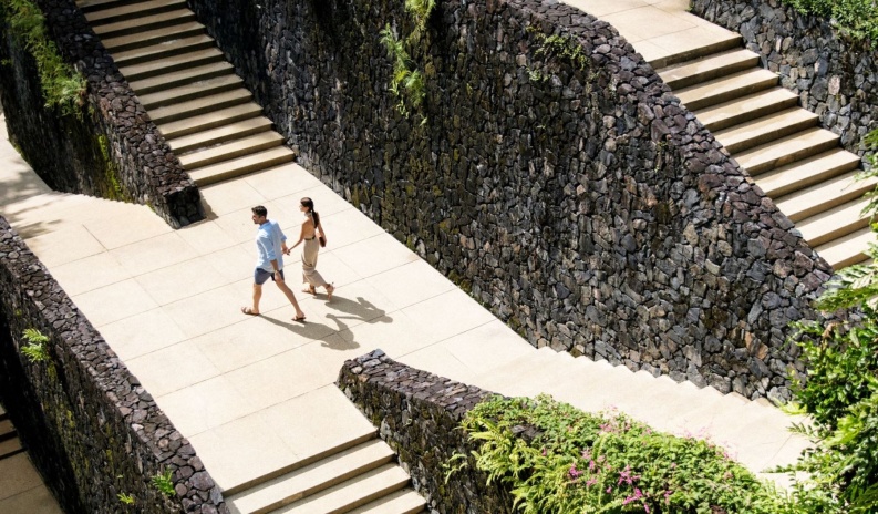 ** виллы, находящиеся среди тропического леса, соединены с общественными зонами курорта сетью дорожек.