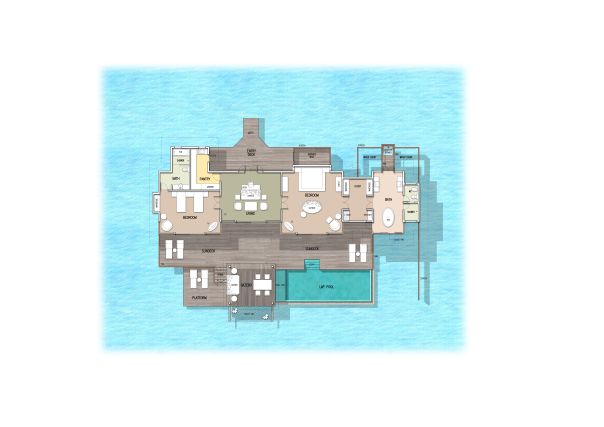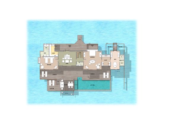 Два острова соединяет живописная прогулочная дорожка, ведущая к фирменному ресторану и винному погребу. На меньшем острове Kuda Rah расположены пляжные виллы с бассейном и улучшенные водные виллы с бассейном, а также дополнительный ресторан и центр отдыха (Recreation Centre).