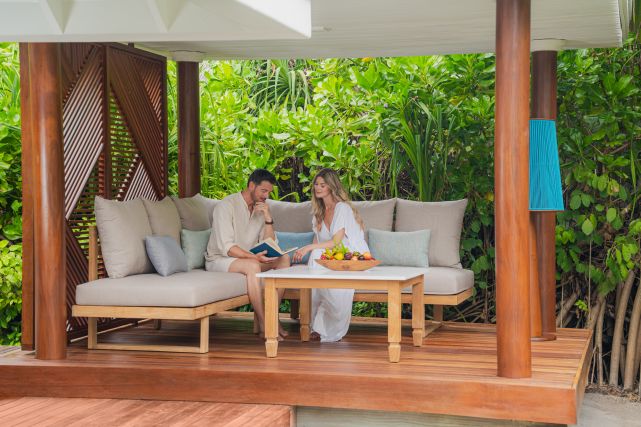 • обновлённая открытая лаунж-зона позволяет наслаждаться закатами или ужином под звёздами, а ванная комната с открытым садом, тропическим душем и ванной под открытым небом становится настоящим островом спокойствия;